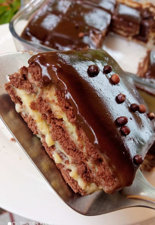 Έστρωσα στο πυρέξ μια στρώση μπισκότα σοκολάτας! Έβαλα πάνω τους κρέμα!
