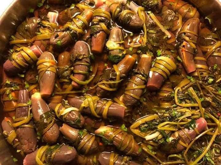 Το βάζουμε σειρά στο ταψί μας ρίχνουμε αλάτι ξίδι και το αφήνουμε 3-4 ώρες