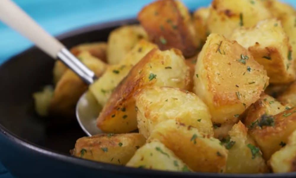 Καθαρίζουμε και κόβουμε τις πατάτες σε μεγάλους κύβους, τις ρίχνουμε στο βραστό νερό και τις αφήνουμε να βράσουν για 10 λεπτά.