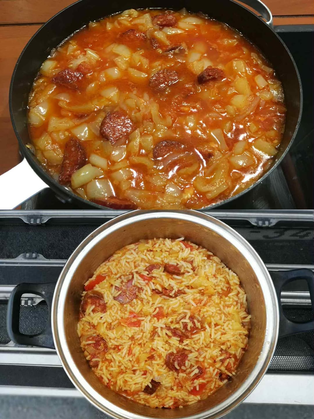Κάποιοι προτιμούν να προσθέτουν το ωμό ρύζι από την αρχή , μαζί με τα άλλα λαχανικά. Άλλοι δοκιμάζουν να χρησιμοποιούν προμαγειρεμένο ρύζι (δεν συνιστούμε αυτήν την επιλογή).