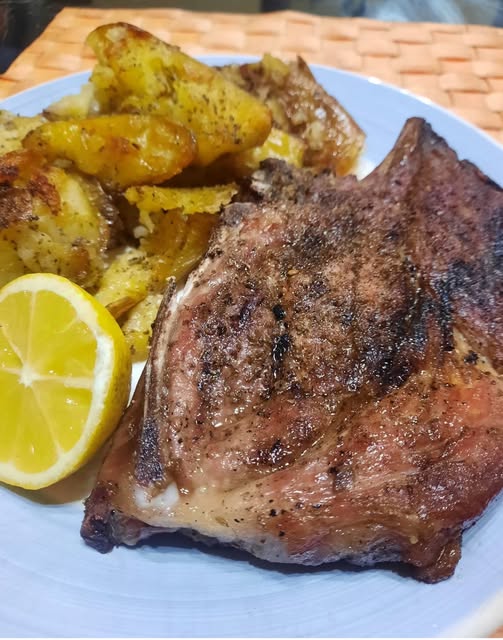 Χαμηλώνω τη φωτιά, προσθέτω λίγο νεράκι και αφού το τραβήξουν, τις γυρνάω πλευρά, προσθέτω νεράκι και όταν μείνουν πάλι με το λάδι τους σβήνω τη φωτιά πασπαλίζω με ρίγανη και στίβω ένα λεμόνι.