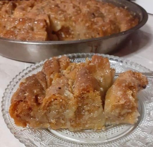 Αυτή είναι η παραδοσιακή μπλατζετα ή πλατσέντα! Ένα παραδοσιακό γλυκό από την Μυτιλήνη με φύλλα καρύδια και μέλι