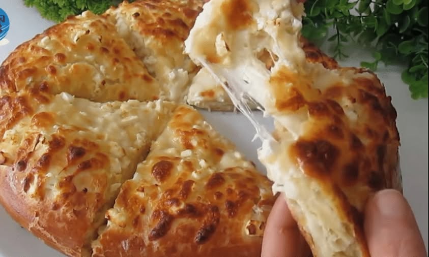 Ανοίγουμε τη ζύμη με τα χέρια σε χονδρό φύλλο .