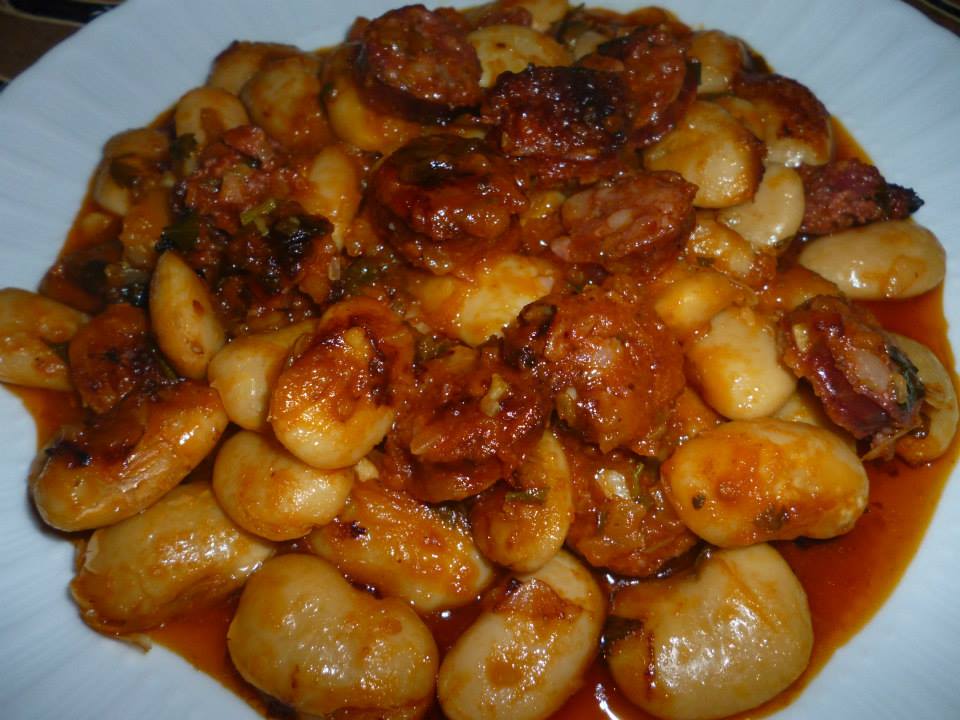 Συνταγή για μερακλήδικους γίγαντες με σάλτσα ντομάτας και χωριάτικο λουκάνικο. Μία παραδοσιακή συνταγή από την Φλώρινα.