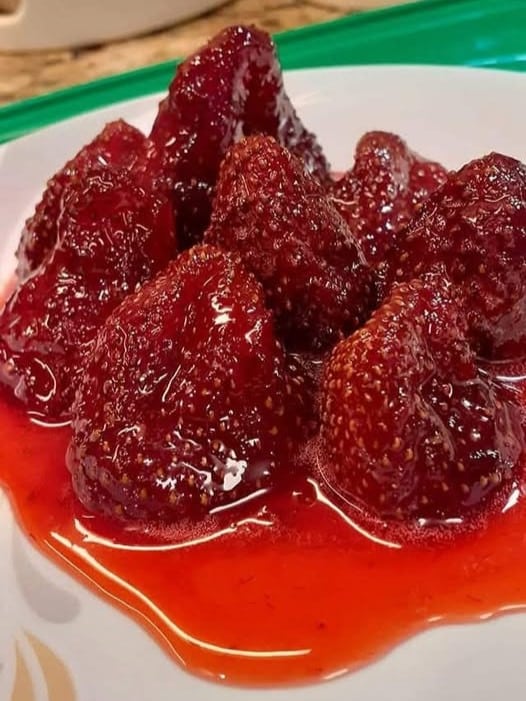 Σε μια κατσαρόλα, τοποθετούμε τις φράουλες και τη ζάχαρη εναλλάξ, δημιουργώντας στρώσεις. Καλύπτουμε την κατσαρόλα και αφήνουμε το μείγμα στο ψυγείο για ένα ολόκληρο βράδυ, ώστε οι γεύσεις να αναμειχθούν και οι φράουλες να απελευθερώσουν τους χυμούς τους.