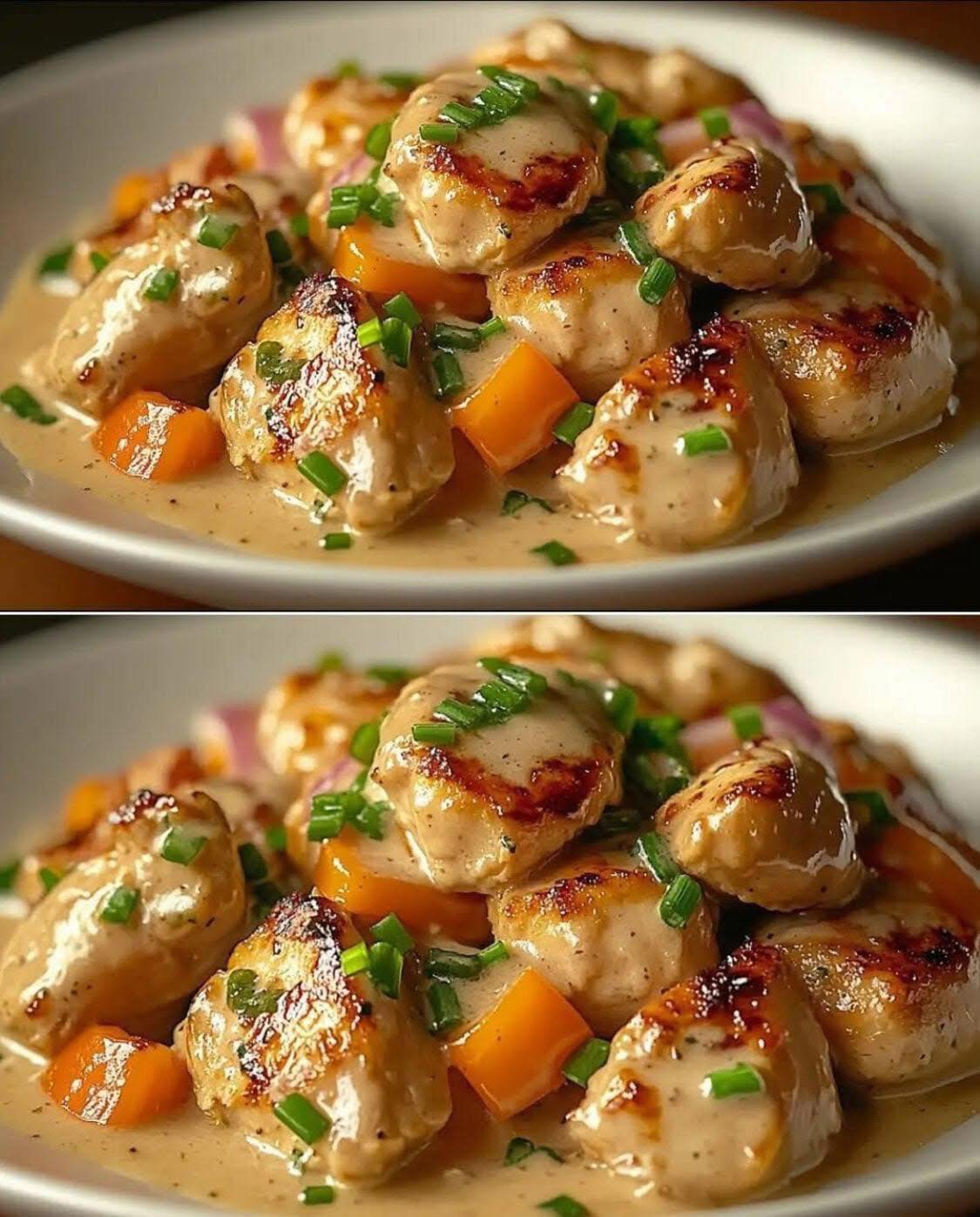 Ο συνδυασμός τρυφερού κοτόπουλου, πλούσιας σάλτσας και φρέσκων λαχανικών δημιουργεί ένα πιάτο που θα εντυπωσιάσει όλους στο τραπέζι.