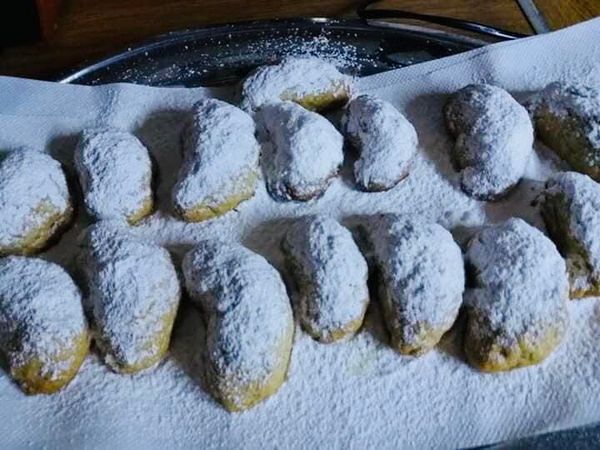 Τριβουμε αμύγδαλο η καρύδι κ κάνουμε μια γέμιση με αυτά κ κανέλα και γαρύφαλλο