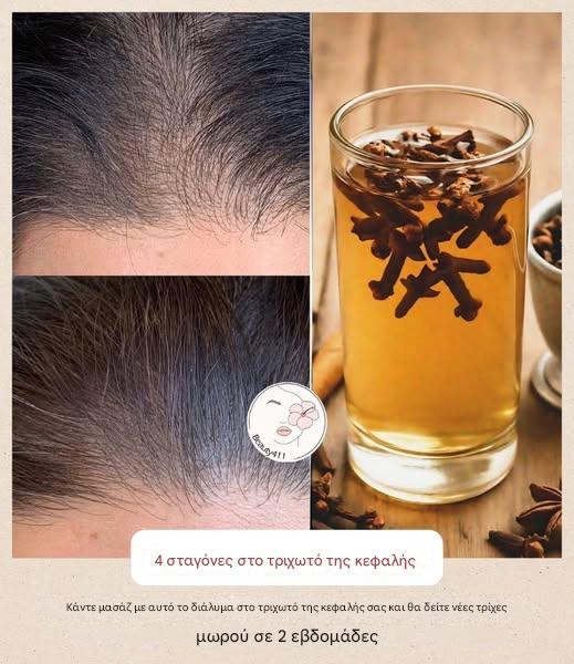 Ενδυναμώνει τις ρίζες των μαλλιών: Το γαρίφαλο είναι πλούσιο σε ευγενόλη, ένα αντιοξειδωτικό που ενδυναμώνει τις ρίζες και αποτρέπει την τριχόπτωση. Η κανέλα, από την άλλη πλευρά, θρέφει το τριχωτό της κεφαλής και μειώνει το σπάσιμο της τρίχας.