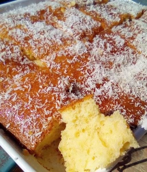 Εύκολο,αφράτο,γευστικό Κέικ Καρύδας χωρίς μίξερ και με 2 αυγουλάκια !!!