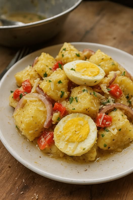 Θες κάτι ελαφρύ, χορταστικό και έτοιμο χωρίς πολλές κατσαρόλες; Αυτή η πατατοσαλάτα είναι η λύση. Δροσερή, με λεμονάτη σάλτσα μουστάρδας που «αγκαλιάζει» τις πατάτες, λίγη μαγιονέζα για σώμα (χωρίς να βαραίνει) και νιφάδες γραβιέρας για αλμυρή ένταση. Τρώγεται άνετα ως βραδινό, πάει τέλεια για τραπέζι/μπαρμπεκιου, και μένει φανταστική στο ψυγείο για την επόμενη μέρα.
