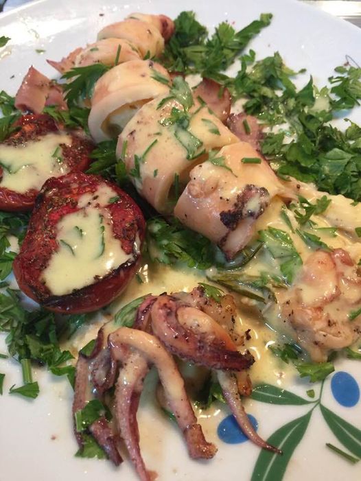 Βάζουμε το τυρι μέσα στο καλαμαρι,1 Κουτ λάδι,το κλαδάκι δέντρ/νου & κλεινουμε με τα πλοκάμια