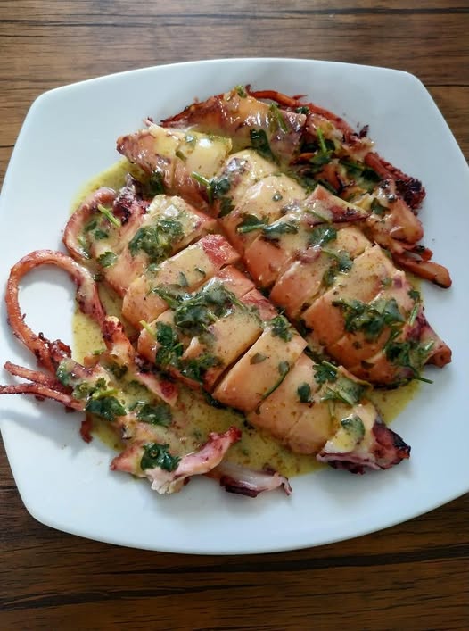 Καλαμαράκια ψητά με φέτα και σώς μουστάρδα