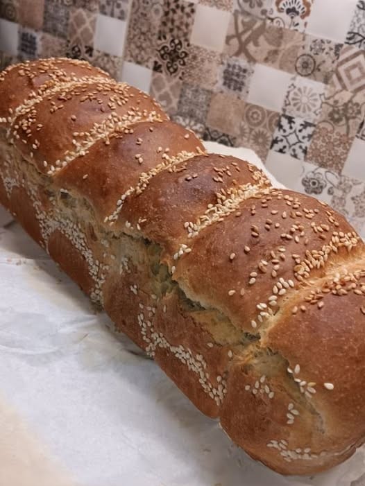 Σε ένα μικρό μπολ, ανακατεύουμε 1 φακελάκι μαγιά, 1 κουταλάκι ζάχαρη, λίγο χλιαρό νερό και λίγο αλεύρι μέχρι να σχηματιστεί ένας χυλός. Αφήνουμε το μείγμα να φουσκώσει για περίπου 30 λεπτά.