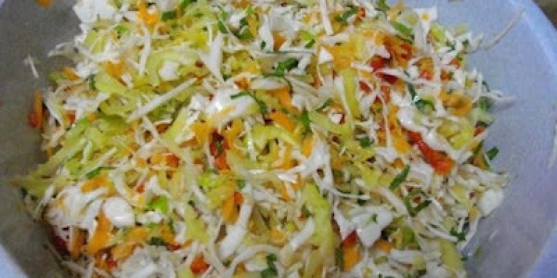 Ψιλοκόβουμε όλα τα υλικά, βάζουμε το αλάτι και το τρίβουμε με το χέρι. Στην συνέχεια, προσθέτουμε το ξύδι και βάζουμε την σαλάτα στο ψυγείο.