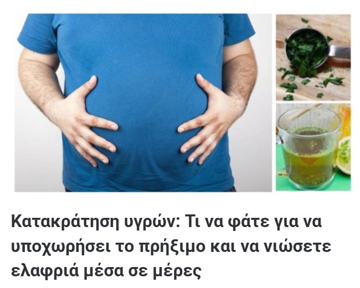 Κατακράτηση υγρών – Έως και το 70% του ανθρώπινου σώματος αποτελείται από νερό. Υπάρχει νερό, τόσο εντός όσο και εκτός των κυττάρων του σώματός μας. Το αίμα αποτελείται κυρίως από νερό, όπως και τα όργανα και οι μυς μας.