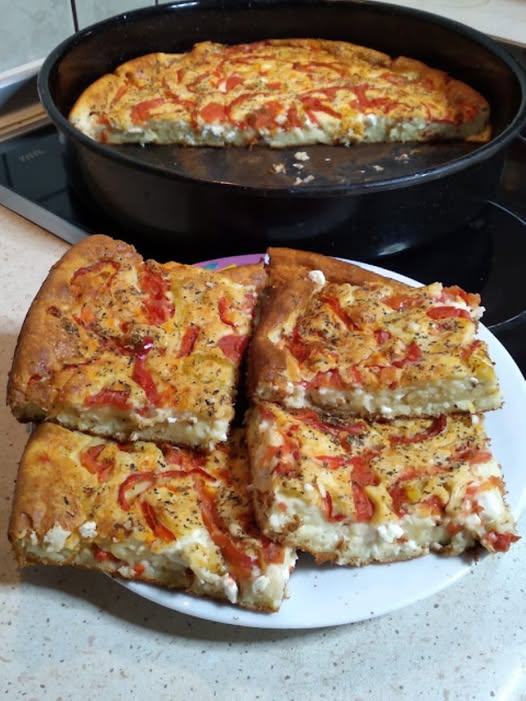 Καταπληκτική τυρόπιτα με κουρκούτι, ντομάτα και πιπεριά