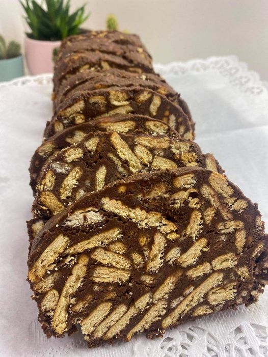 τέλος ριχνουμε το μείγμα σε αντικολλητικο χαρτί το τύλιγουμε σε σχήμα κορμού και το βαζουμε κατάψυξη τρεις ώρες να σφίξει.