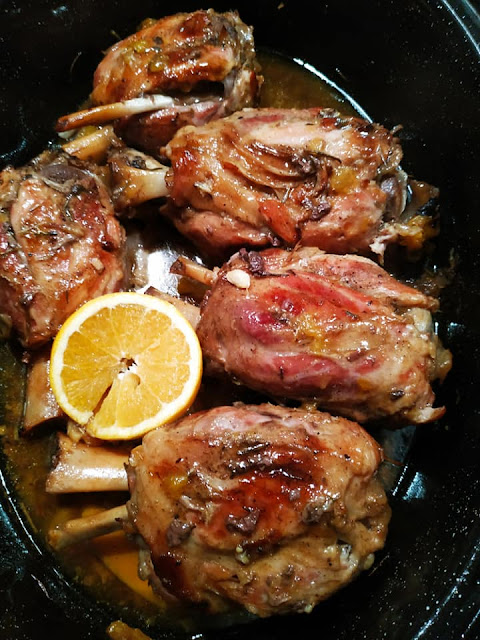 2 κσ μουστάρδα, 2 κγ μέλι, 2σκ σκόρδο, 2 πορτοκάλια🍊 το χυμό, ελαιόλαδο , δεντρολίβανο, αλάτι, πιπέρι .
