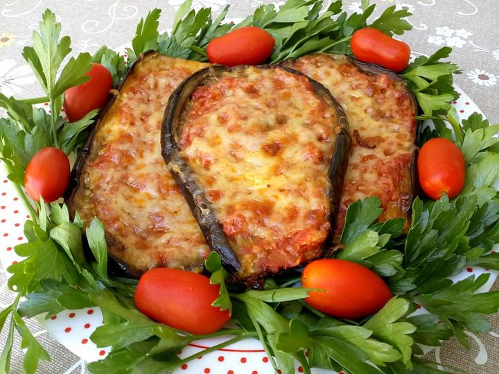 Μελιτζάνες σαν πιτσάκια στο φούρνο, με σκορδάτη σάλτσα και τυράκια…. Μπουκιά και συχώριο
