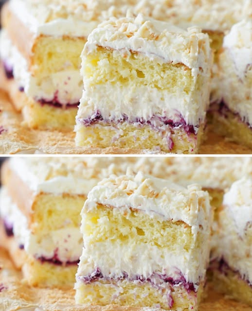 Εκλεκτό κέικ με μασκαρπόνε, λευκό Kinder Bueno και μαρμελάδα μαύρης σταφίδας
