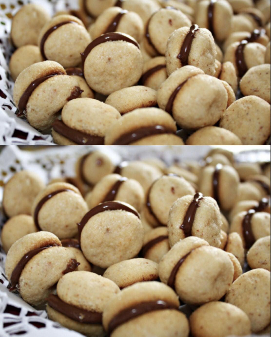 Αυτά τα μπισκότα είναι πολύ μικρά, σε μέγεθος μπουκιάς. Έχουν ακαταμάχητη γεύση και λιώνουν κυριολεκτικά στο στόμα. Αν τα φτιάξετε στη νηστίσιμη εκδοχή, χρησιμοποιήστε μαργαρίνη αντί για βούτυρο και για την «κόλλα» χρησιμοποιήστε μαρμελάδα ή κρέμα νηστείας.