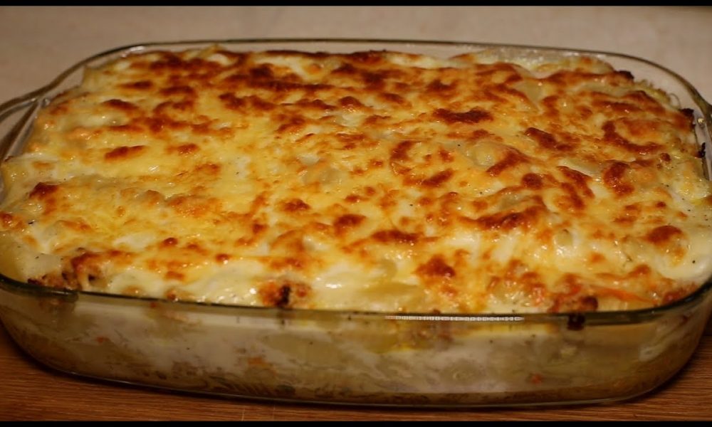 Βάζουμε το περιεχόμενο του μπολ σε ένα πυρέξ και το στρώνουμε καλά.
