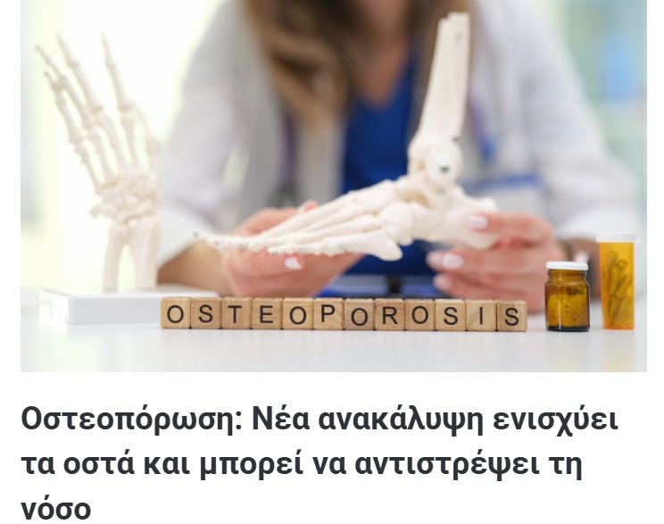 Επιστήμονες ανακάλυψαν έναν φυσικό διακόπτη στο σώμα που βοηθά τα οστά να γίνονται πιο δυνατά, ανοίγοντας τον δρόμο για νέες θεραπείες κατά της οστεοπόρωσης. Πρώιμα αποτελέσματα δείχνουν ότι αυτή η προσέγγιση θα μπορούσε να προστατεύσει τα υγιή οστά, αλλά και να αναδομήσει εκείνα που έχουν ήδη εξασθενήσει από τη νόσο.