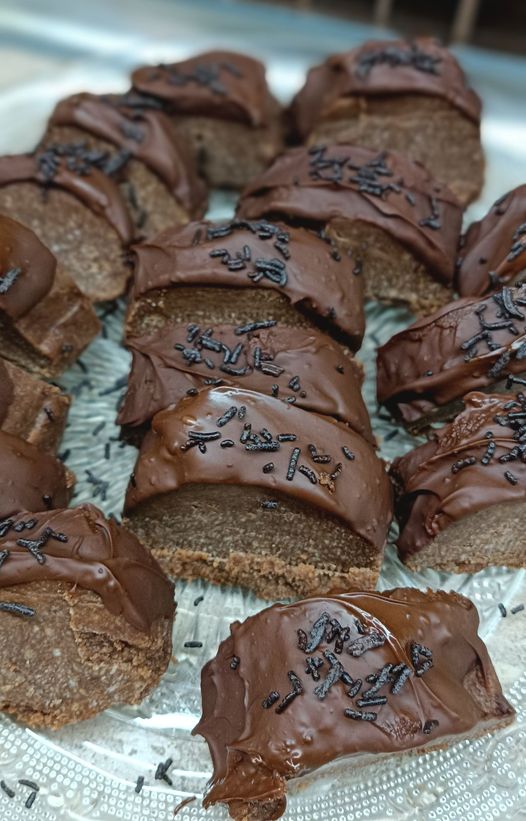 Παίρνουμε ένα ένα κομμάτι και το περνάμε στη σοκολάτα απ’ τη μια μεριά και ρίχνουμε λίγο τρούφα. Σκεπάζουμε με μεμβράνη και το βάζουμε ψυγείο.