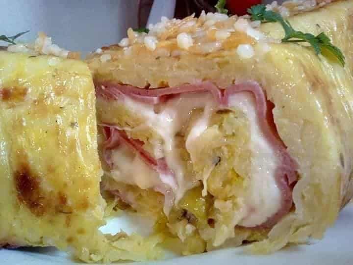 Αφου άπλωσουμε να πάει παντού έκανα ρολό και ψήνουμε πάλι για 20 λεπτά μέχρι να λιώσουν τα τυριά!