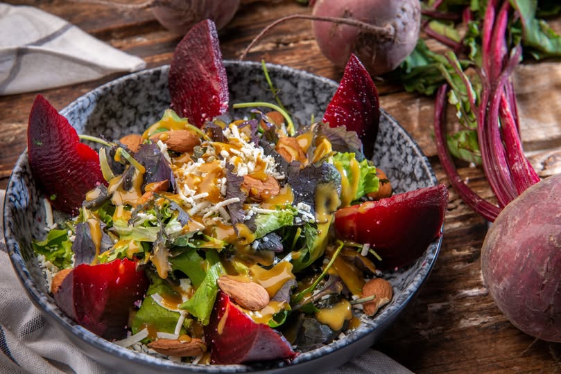 Γίνονται υπέροχη σαλάτα μιας και η σύγχρονη γαστρονομία έχει μια διαφορετική φιλοσοφία και η σαλάτα άρχισε πλέον να διαφοροποιείται από τις παραδοσιακές σαλάτες ή τις σαλάτες των εστιατορίων. Μια ζεστή, φανταστική σαλάτα που φτιάχνεται όλο το χρόνο, με υπέροχη γεύση και διαφορετικές υφές. Δίνει χρώμα στο τραπέζι, είναι ελαφριά, κλέβει τις εντυπώσεις. Παρασκευάζεται εύκολα σε ροδέλες ή σε τέταρτα, αρκεί να έχουν ψηθεί τα παντζάρια που όντως θέλουν κάποιο χρόνο.
