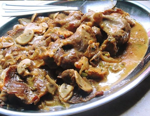 Πεντανόστιμα χοιρινά μπριζολάκια στο τηγάνι με μανιτάρια, κρασί και κρέμα γάλακτος