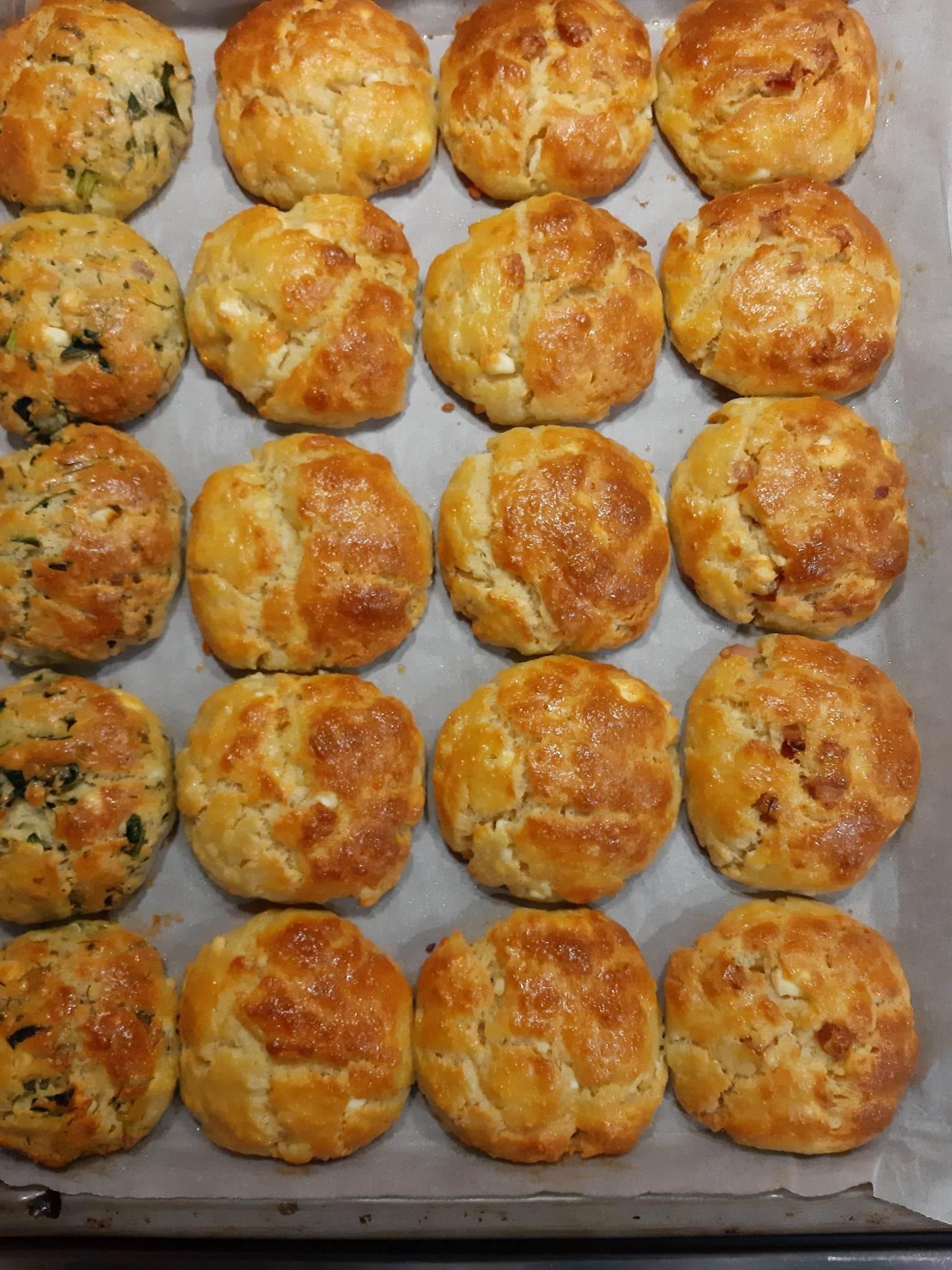 Γυρίζουμε απαλά την ζύμη και πλάθουμε 20 μπαλίτσες στο ίδιο μέγεθος και σχήμα. Ψήνουμε σε ένα ταψί με λαδόκολλα στους 170 βαθμούς Κελσίου, σε προθερμασμένο φούρνο, στον αέρα για 20-25 λεπτά, ανάλογα και από τον φούρνο.