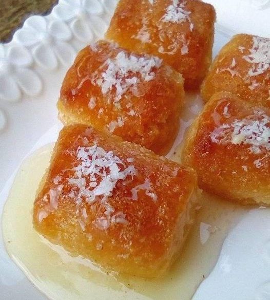 Πολύ εύκολα και πολύ γευστικά γλυκάκια καρύδας με σιρόπι