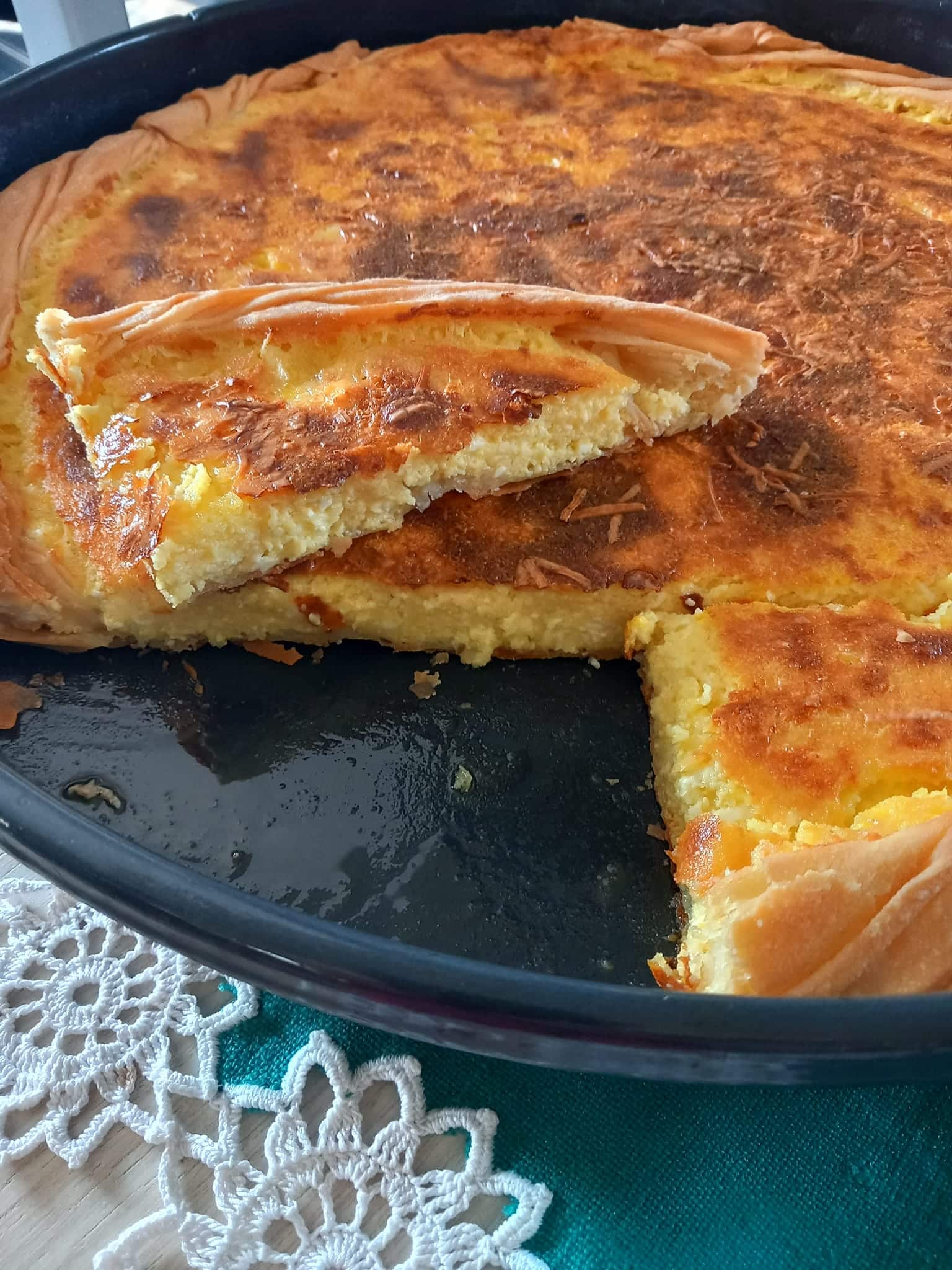 Αφού κρυώσει λίγο προσθέτουμε 200 γρ μυζηθρα σλλο τόσο φέτα και λίγο κεφαλοτυρι.