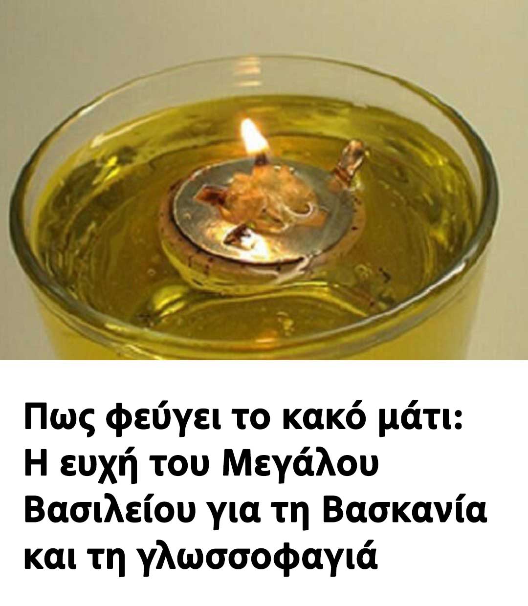 Η ευχή κατά της βασκανίας του Μεγάλου Βασιλείου του Ουρανοφάντορος Επισκόπου Καισαρείας έχει ως εξής και πρέπει να διαβάζεται αποκλειστικά και μόνο από τον ιερέα και όχι από κάποιον λαϊκό: