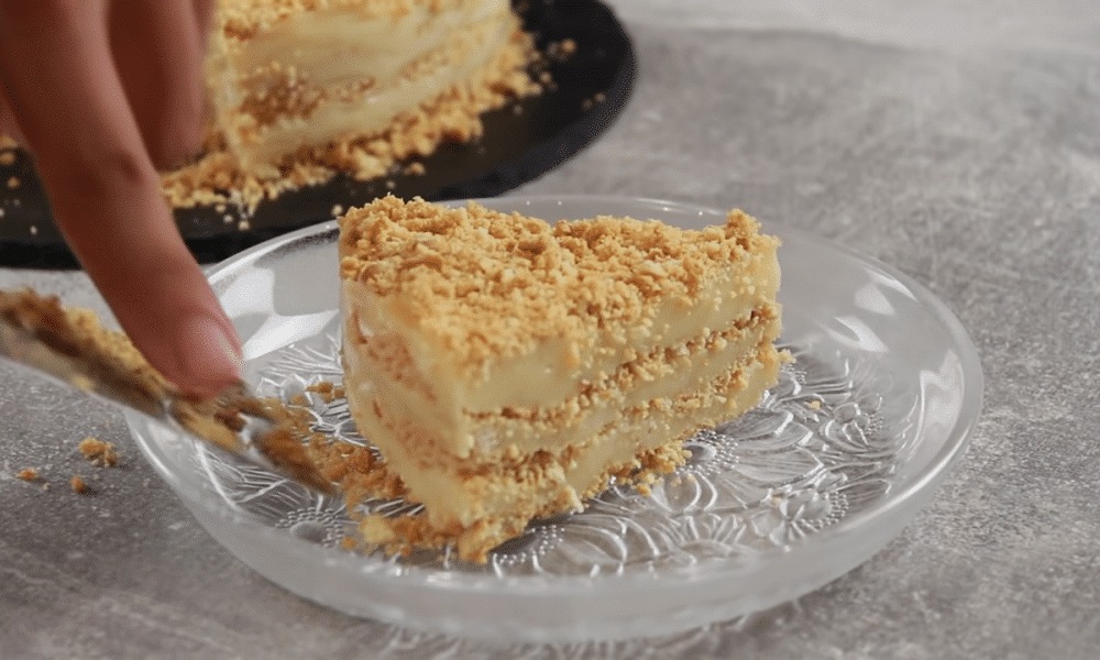 Θρυμματίζουμε τα μπισκότα και τα αδειάζουμε σε ένα μπωλ.