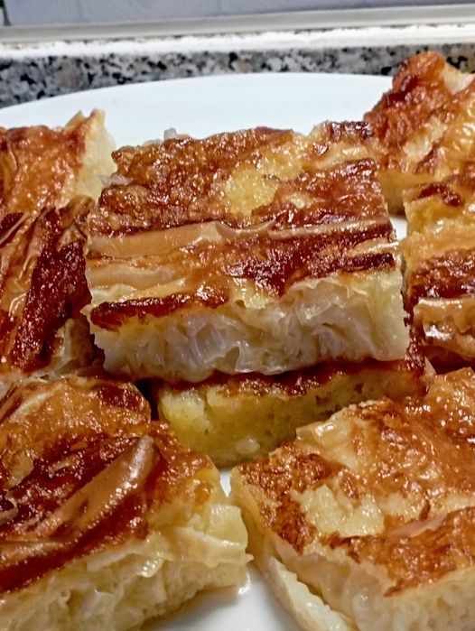 μισό φύλλο κρούστας, 1 κεσεδάκι γιαούρτι, 1 φλιτζάνι του τσαγιού σπορέλαιο, δυόμιση φλιτζάνια ζάχαρη, πέντε αυγά μία βανίλια ένα baking