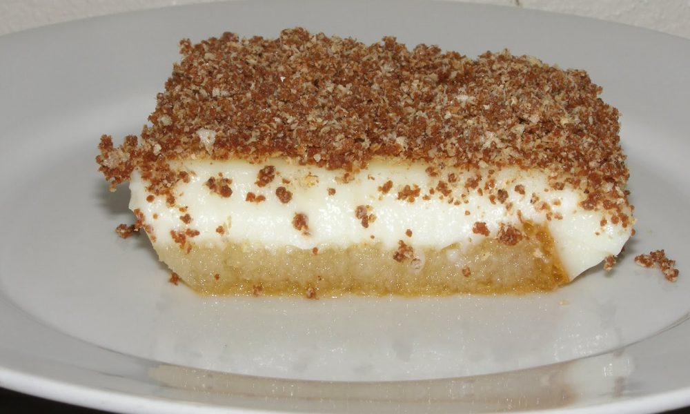 Σιροπιαστό γλυκό με φρυγανιές και κρέμα