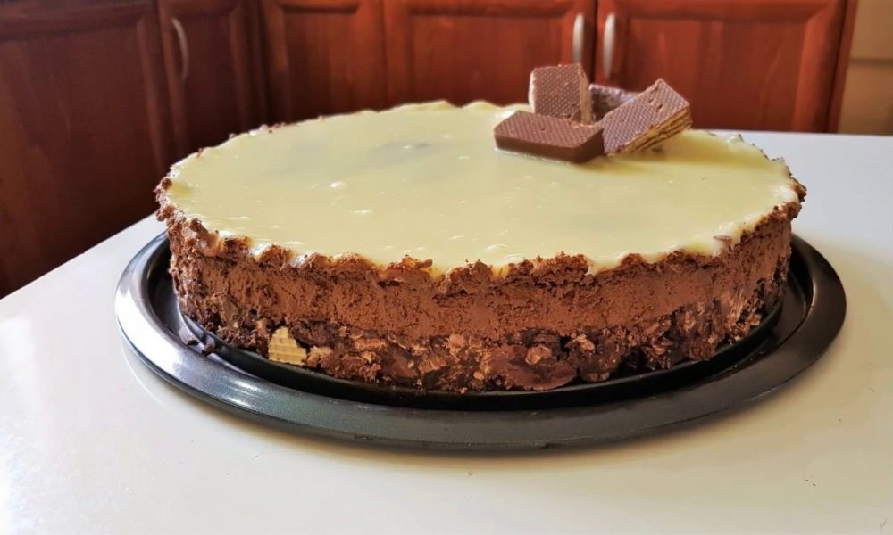 Θα πάρουμε το μπώλ με τις σοκοφρέτες και θα ρίξουμε μέσα του 5 κουταλιές από την λιωμένη σοκολάτα. Θα ανακατέψουμε τόσο ώστε η σοκολάτα να απλωθεί σε όλα τα κομμάτια της σοκοφρέτας και έτσι έχουμε την πάστα της τούρτας μας έτοιμη.