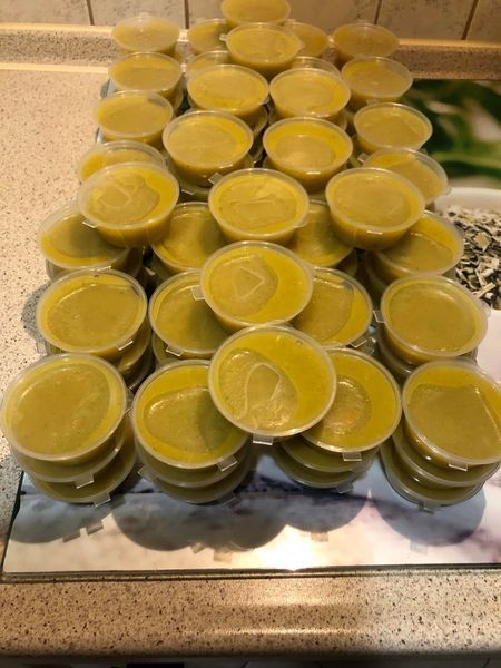 τα πολτοποιουμε τα αφήνουμε να κρυώσουν και γεμίζουμε ατομικά μπολακια και τα βάζουμε κατάψυξη σύνολο 100 βγήκαν