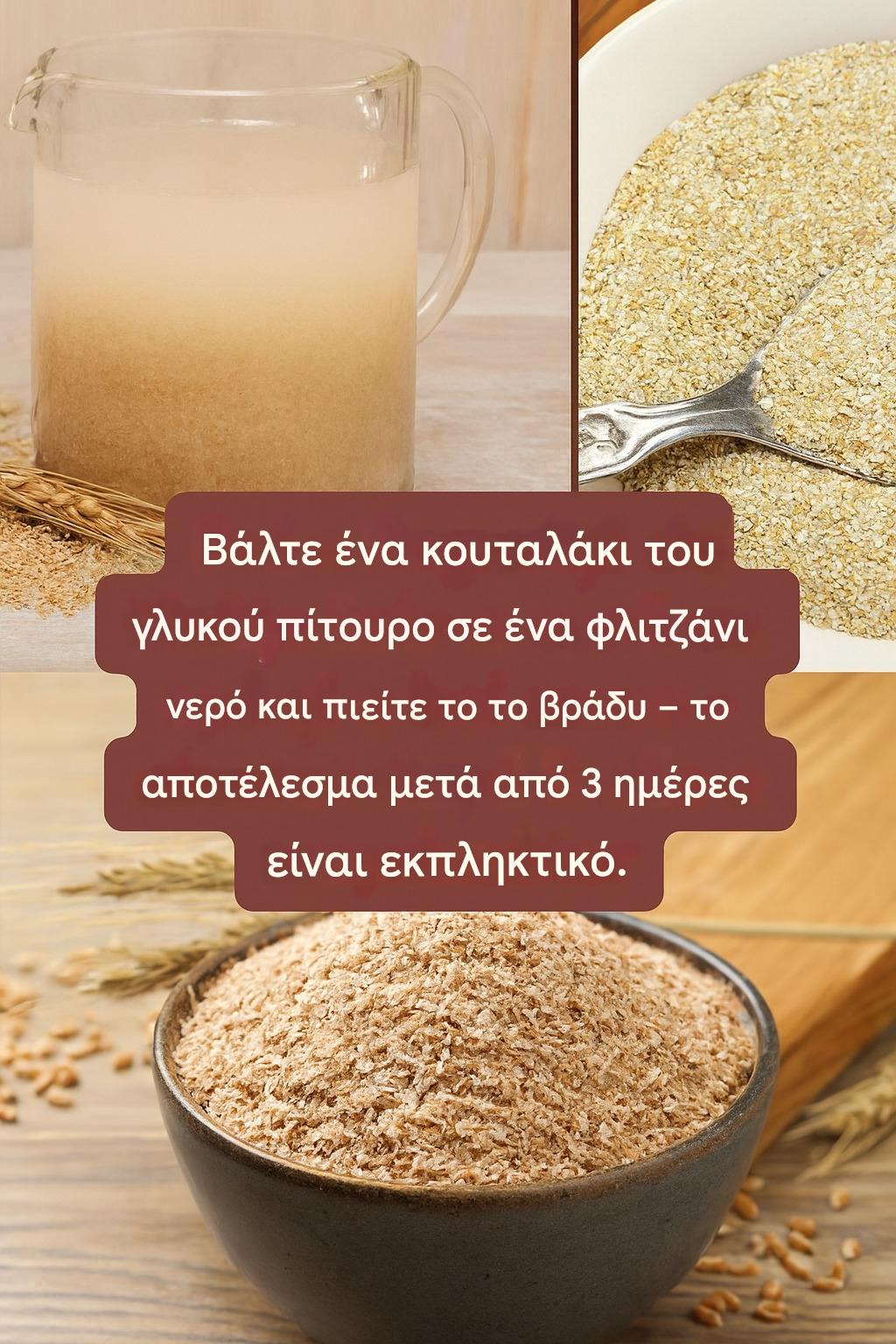 Στον κόσμο των φυσικών θεραπειών, το πίτουρο σιταριού συχνά παραβλέπεται. Αλλά αυτή η πολύτιμη πηγή φυτικών ινών, βιταμινών Β και μετάλλων μπορεί να έχει εκπληκτικά γρήγορες επιπτώσεις στην υγεία σας – ειδικά αν το καταναλώνετε το βράδυ, με νερό.