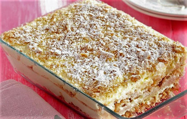 Για την κρέμα: 2 λίτρα γάλα, 6 κουταλιές σούπας κορν φλάουρ, 3 αυγά, 8 κουταλιές σούπας ζάχαρη, 4 βανίλιες, 2 κουταλιές σούπας βούτυρο.