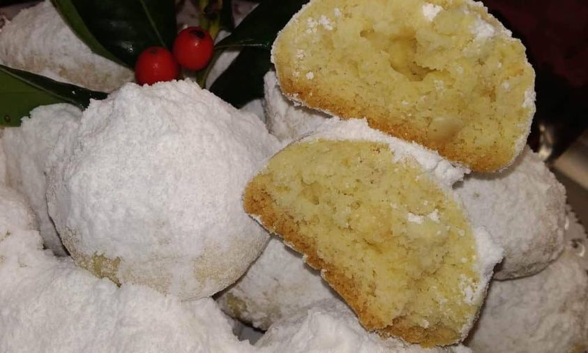 έβαλα 500 γραμμάρια βούτυρο lurpak πολύ καλά μαλακωμένο 100gr flora soft με βούτυρο 220 γραμμάρια ζάχαρη άχνη 2 βανίλιες μισό σφηνάκι κονιάκ και μία κουταλιά του γλυκού μπέικιν πάουντερ. 900γρ αλεύρι για όλες τις χρήσεις και 200 γραμμάρια ασπρισμένα καβουρντισμένα αμύγδαλα χοντροκομμένα.