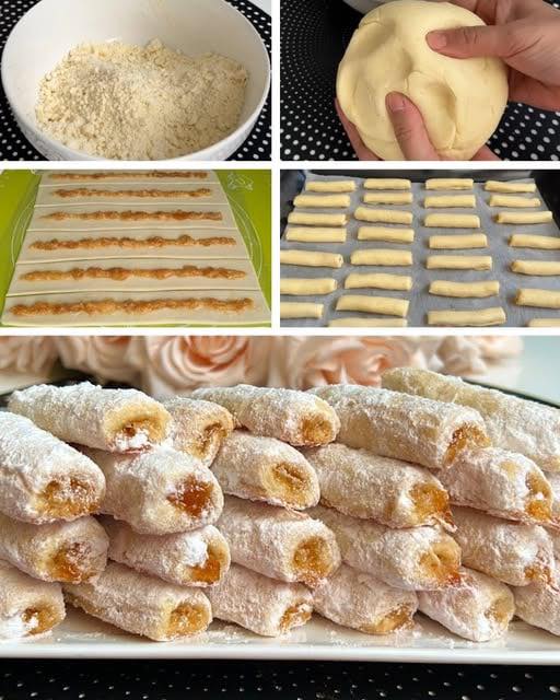 ΠΩΣ ΝΑ ΦΤΙΑΞΕΤΕ ΚΡΟΥΣΤΑΝΕΣ ΜΑΡΜΕΛΑΔΑΣ: Σε ένα μπολ, προσθέστε το αλεύρι, τη ζάχαρη βανίλιας, το αλάτι, το μπέικιν πάουντερ, τη ζάχαρη άχνη και το βούτυρο.