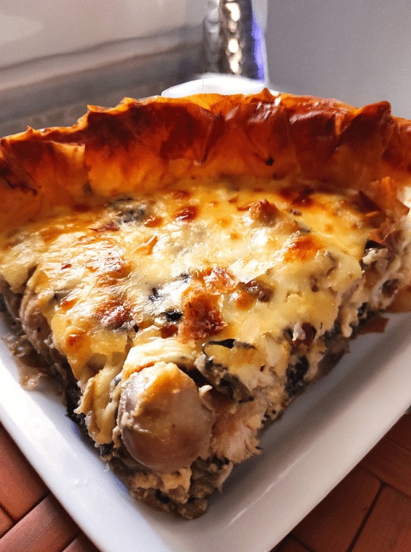 Τέλεια τάρτα κοτόπουλο μανιτάρια και σπανάκι με φύλλο κρουστάς