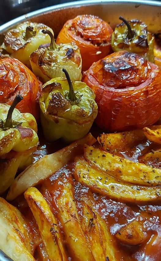 Αδειάζουμε τις ντομάτες και τις πιπεριές, (βγάζουμε τα σποράκια από μέσα καλά). Στο μούλτι βάζω ένα καρότο, 1 κρεμμύδι μεγάλο, το εσωτερικό της ντομάτας, μαϊντανό και δυόσμο, (εγώ βάζω μπόλικο και από τα δύο), τα αδειάζω σε μπολ και προσθέτω, ελαιόλαδο, αλάτι, πιπέρι και δοκιμάζω να δω αν χρειάζεται κάτι ακόμη και πρέζα ρίγανη.