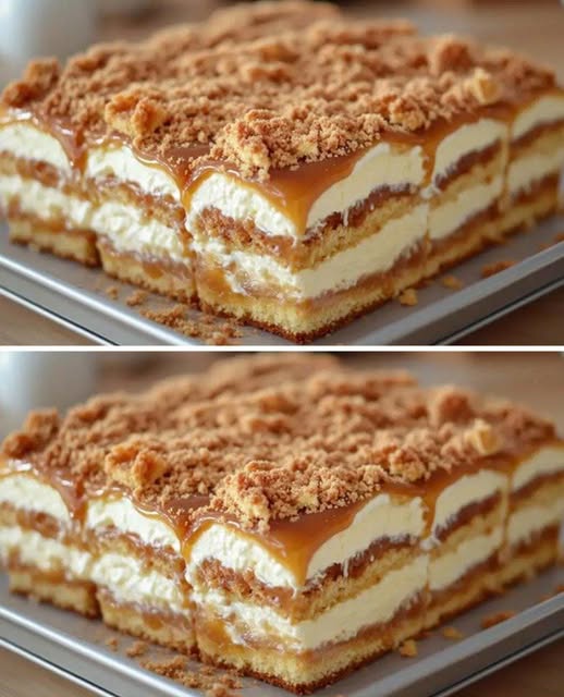 Το παραδέχομαι: μερικές φορές μου αρέσει να ετοιμάζω εντυπωσιακά επιδόρπια, αλλά χωρίς ιδιαίτερη προσπάθεια. Ειδικά τα Σαββατοκύριακα, που το μόνο που θέλω να κάνω είναι να περάσω χρόνο με την οικογένειά μου, όχι με τον φούρνο. Αυτό το κέικ χωρίς ψήσιμο με μασκαρπόνε, μπισκότα και σάλτσα καραμέλας είναι ακριβώς το είδος του επιδορπίου που σας σώζει τη μέρα: φτιάχνεται γρήγορα, φαίνεται καταπληκτικό και είναι τόσο μαλακό που όλοι ζητούν άλλη μια φέτα. Είναι λίγο σαν ένα ανανεωμένο τιραμισού, αλλά πιο γλυκό και βελούδινο – μια πραγματική απόλαυση!