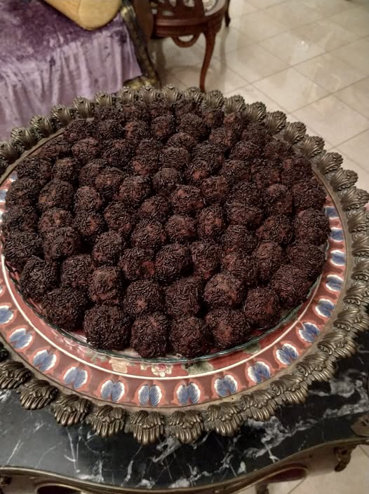 Το τοποθετούμε στο ψυγείο για μία ώρα κ όταν σφίξει το πλάθουμε μπαλάκια ,τα οποία πασπαλιζουμε με τρούφα.