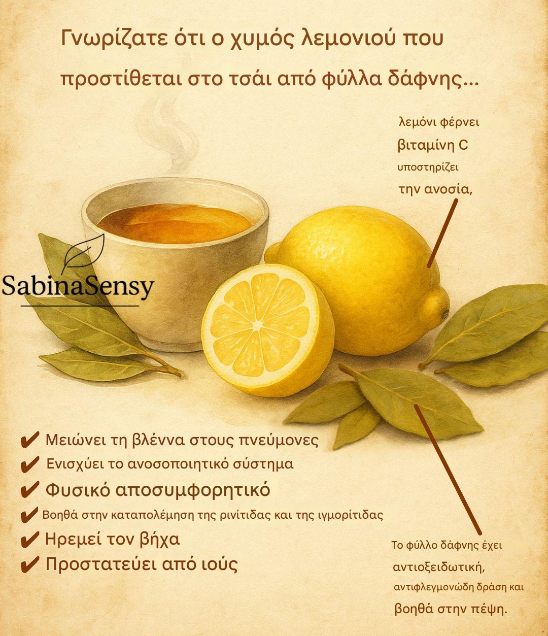 Γνωρίζατε ότι ο χυμός λεμονιού που προστίθεται στο τσάι δάφνης ενισχύει τα οφέλη αυτού του συνδυασμού;