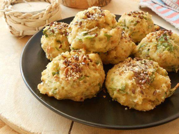 Χωρίζουμε το μείγμα σε 9 κομμάτια τα πλάθουμε σε στρογγυλά μπαλάκια. Τα ακουμπάμε σε ταψί στρωμένο με λαδόκολλα και αν θέλουμε το πασπαλίζουμε με λίγο σουσάμι ή λιναρόσπορο κοπανισμένο.